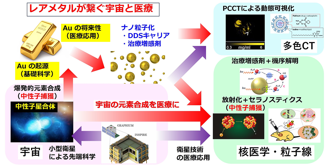 Furthermore, this research will apply the technology for “observing” the universe to devices for “examining” the human body. For example, we will develop a multicolor spectral CT device that colors X-ray CT images using ultrafast pulse discrimination, pioneer an innovative imaging technology that visualizes the internal dynamics of anticancer drugs using drug-specific gamma rays, and develop a real-time visualization device during particle beam therapy. Furthermore, through various particle beam accelerator experiments, this division will obtain cross-section data, which is the basis of particle and nuclear physics, and aim to apply it to a wide range of fields.