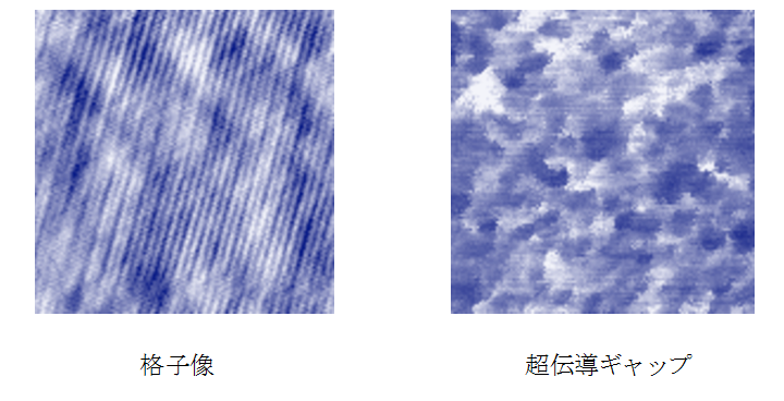 我々は、多彩な固体電子の様子が最もはっきり現れる極低温下で使えるSTMの開発を長く続けてきました。そしてそれを武器に、高温超伝導体の超伝導の性質を調べています。図は、表面に見える格子の様子と、同じ所で測った超伝導の強さを表す量を並べて示しました。格子構造は平坦なのに、驚くべき事に電子は不均一な局所構造を取る事がわかります。