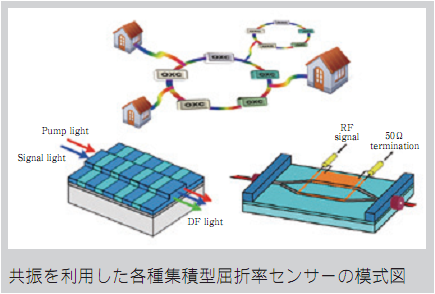 当研究室ではDWDMの次のステップとであるネットワーク化に必要となる高精度光変調器、光波長変換器などの多機能な光回路を光導波路技術により、1枚の平面基板上に集積する光集積回路の研究を中心に据えてその材料探索からデバイス構成、さらにはシステム応用まで幅広くかつ掘り下げたユニークな研究を行っています。さらに情報通信ネットワークのみならず地球規模での環境対策や生命生体現象の解明にこうした光回路技術が適用できないかという視点からも基礎的な検討も行っています。